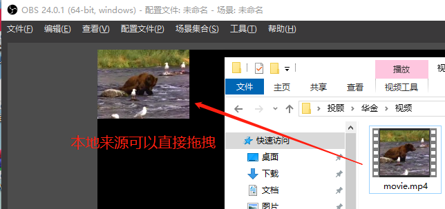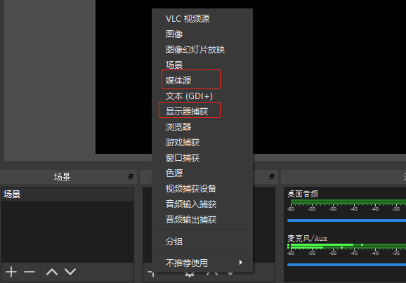 媒体源:可以直接将本地媒体文件拖进窗口;显示器捕获:播放本地视频