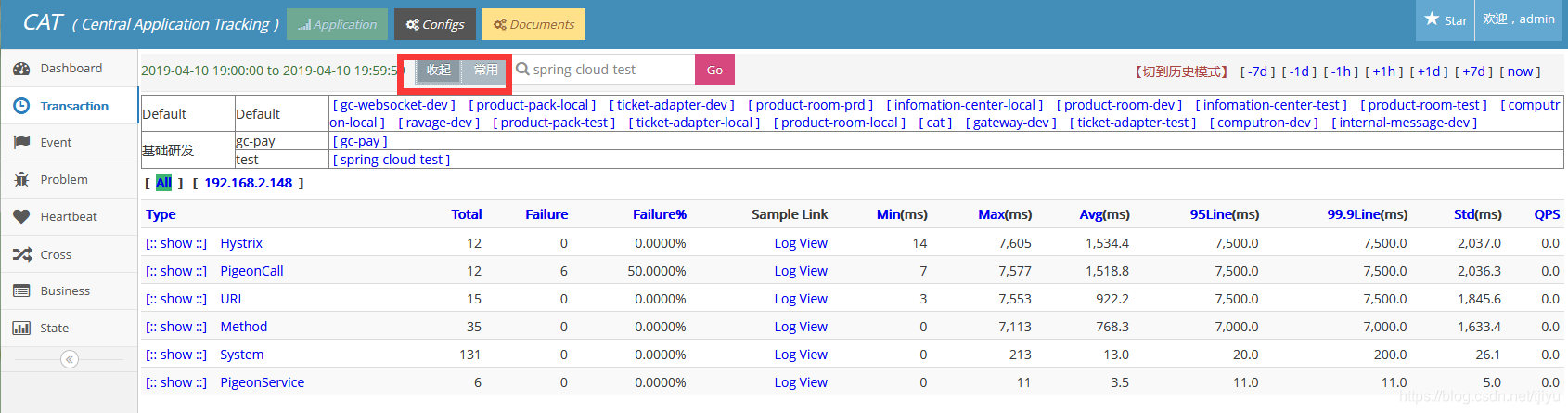 对项目进行了以上配置,部署(测试)后就会有监控数据上传到我们的CAT服务器集群。