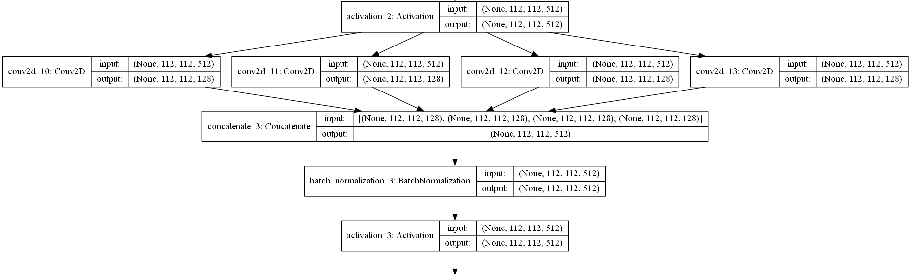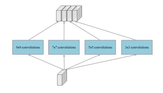 def MSB(filters):"""Multi-Scale Blob.Arguments:filters: int, filters num.Returns:f: function, layer func."""params = {'activation': 'relu', 'padding': 'same','kernel_regularizer': l2(5e-4)}def f(x):x1 = Conv2D(filters, 9, **params)(x)x2 = Conv2D(filters, 7, **params)(x)x3 = Conv2D(filters, 5, **params)(x)x4 = Conv2D(filters, 3, **params)(x)x = concatenate([x1, x2, x3, x4])x = BatchNormalization()(x)x = Activation('relu')(x)return xreturn f