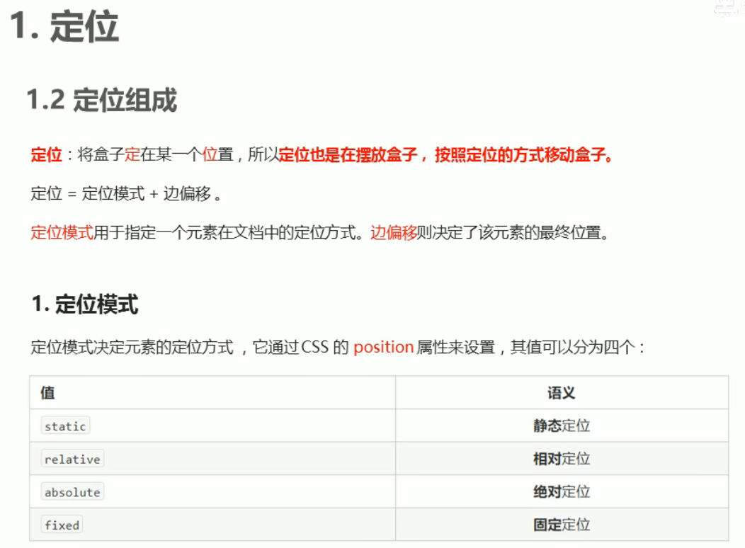 定位模式用于指定一个元素在文档中的定位方式,边偏移则决定了该元素最终位置