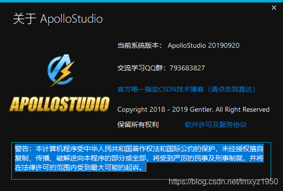 A:打开软件根目录下的Resources文件夹(默认安装地址为C:\Program Files (x86)\ApolloStudio\Resources),放置一张名为OEM.png的图片即可(可以在图片上显示企业的联系方式,信息等等,该图片将自动拉伸平铺整个弹窗界面),同时修改同路径下的Website.txt内的网址,可以让用户在点击关于弹窗的图片后立即打开对应的设置网址,软件重启生效。