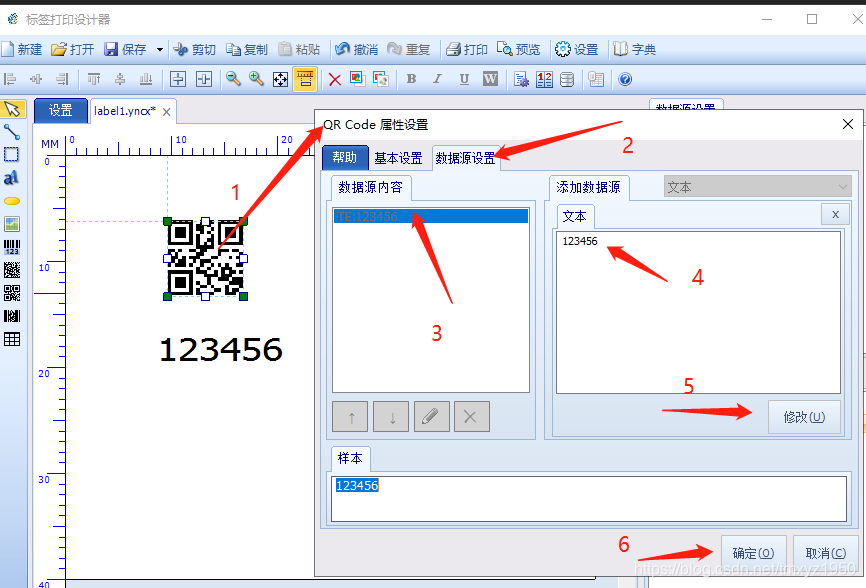 上面我们设置标签为50mm*40mm的尺寸大小 ,然后调整文本和二维码的位置和大小,可以事先对二维码或文本的内容进行修改,修改流程如下: