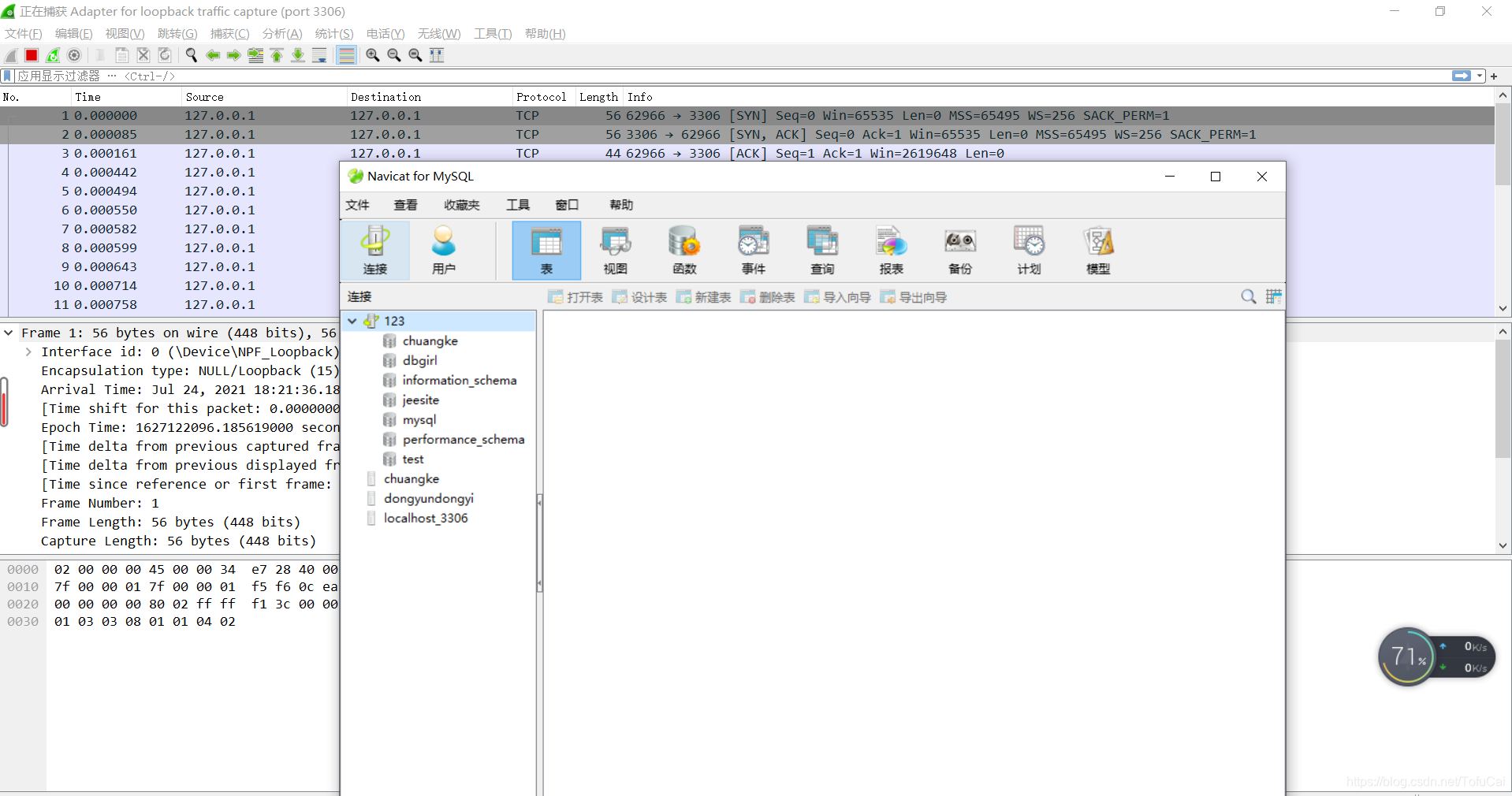 准备:wireshark(抓包工具),navicat(数据库可视化工具),mysql