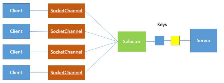 而采用的了NIO + select/pool/epoll的方式之后,其大致的结构图如下。因为基于select,在用户空间的应用可以有多种方式实现socket数据读写,这里的结构图也不太好画,基于不同的实现方式,有不同的画法。但是大致我们可以理解成这样的: