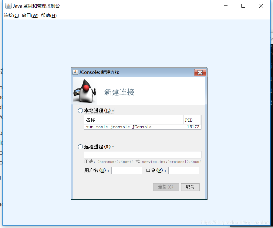 connection = pid || host:port || JMX URL (service:jmx:<协议>://...)