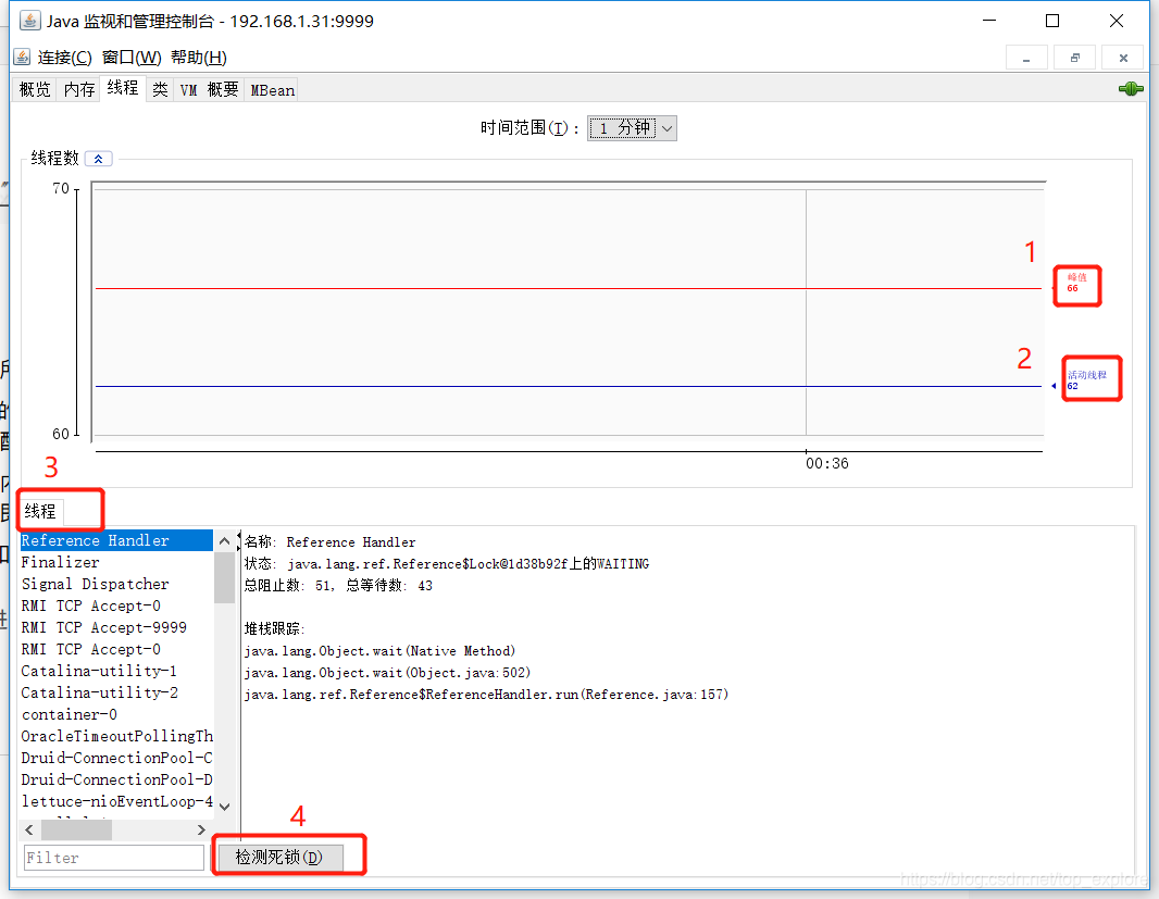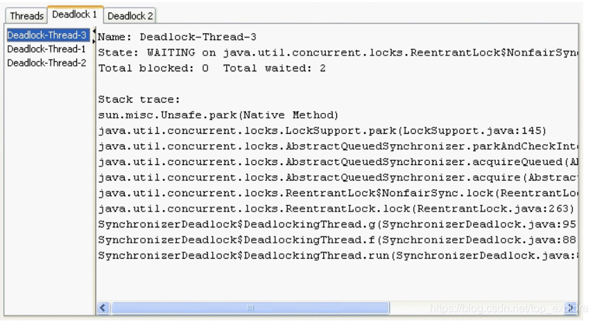 4.检测死锁,如果检测出死锁,则会在线程选项卡旁边新建选项卡: