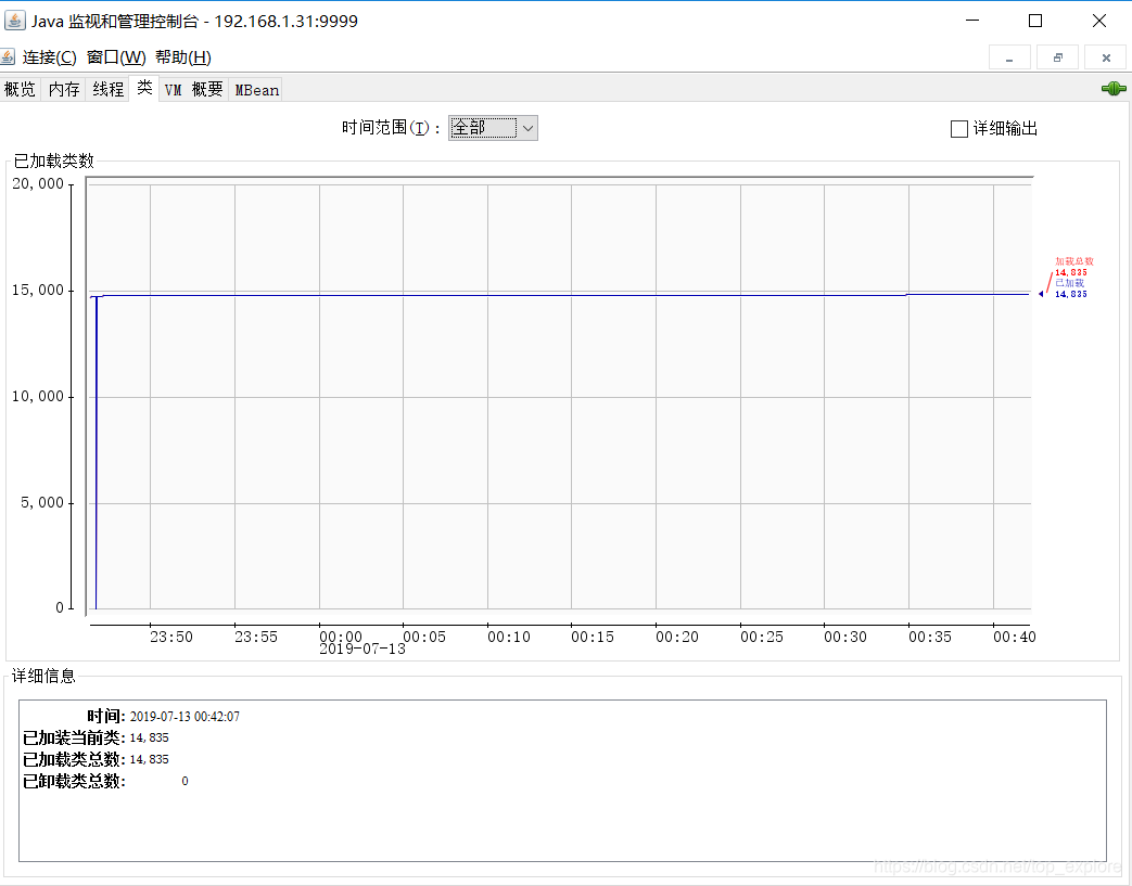 类标签页展示了类的加载总数、当前加载总数、已卸载总数 。