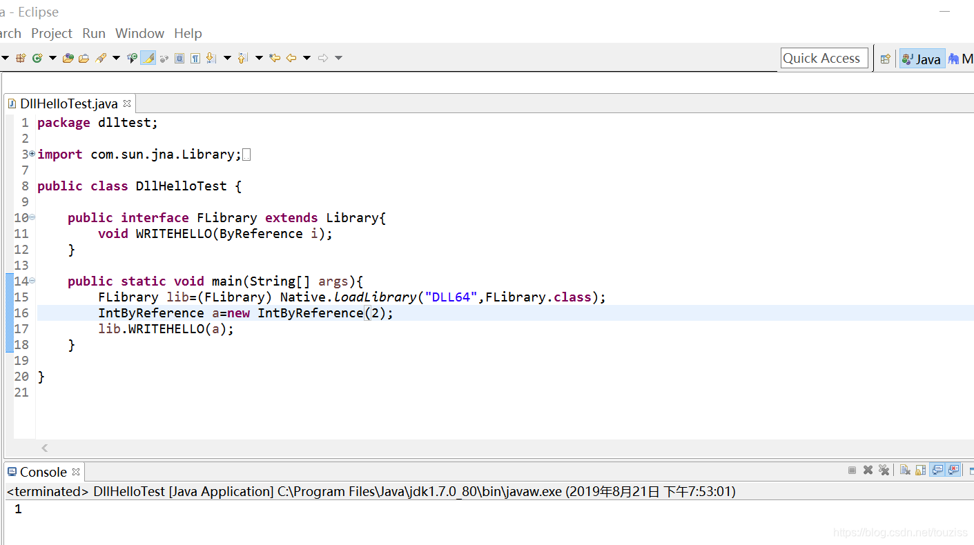 OK,然后新建java项目,并且要把dll放到java项目的bin路径下!!或者在项目里写绝对路径。而且要记得添加jna.jar,网上一堆