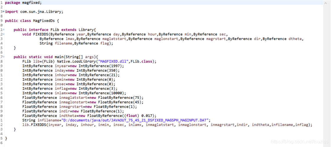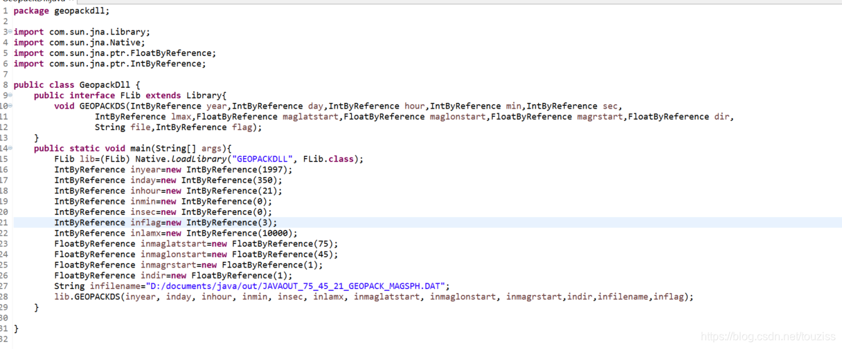 目的是用geopack,geopack本身是2000多行的fortran代码,注释都是C,想用fortran90,但是架不住改那么多行注释标签,OK,就用fortran77。然后对fortran实在不是很熟,而且考虑的后期要做的计算比较多,还是用比较熟悉的java,所以考虑生成dll,供java调用。然后用hello world的形式做一个小测试,中间遇到的一些问题,记录下来