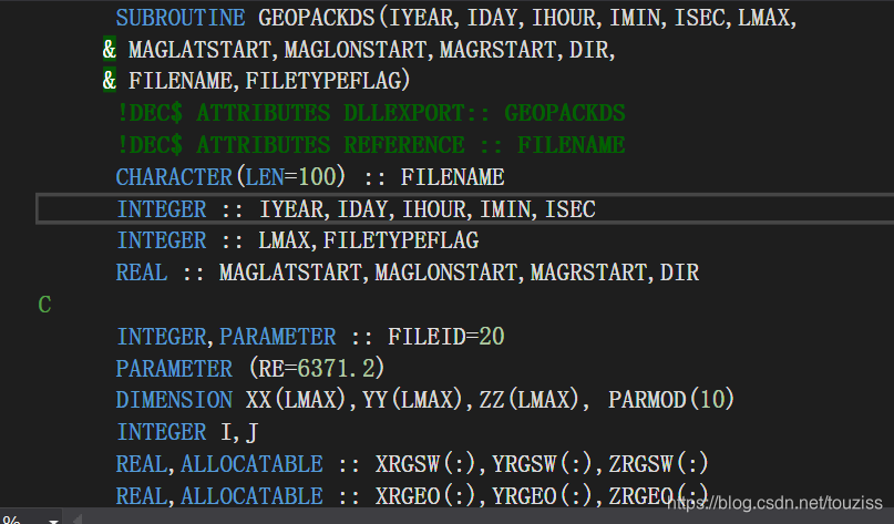 这是DLL的部分fortran代码