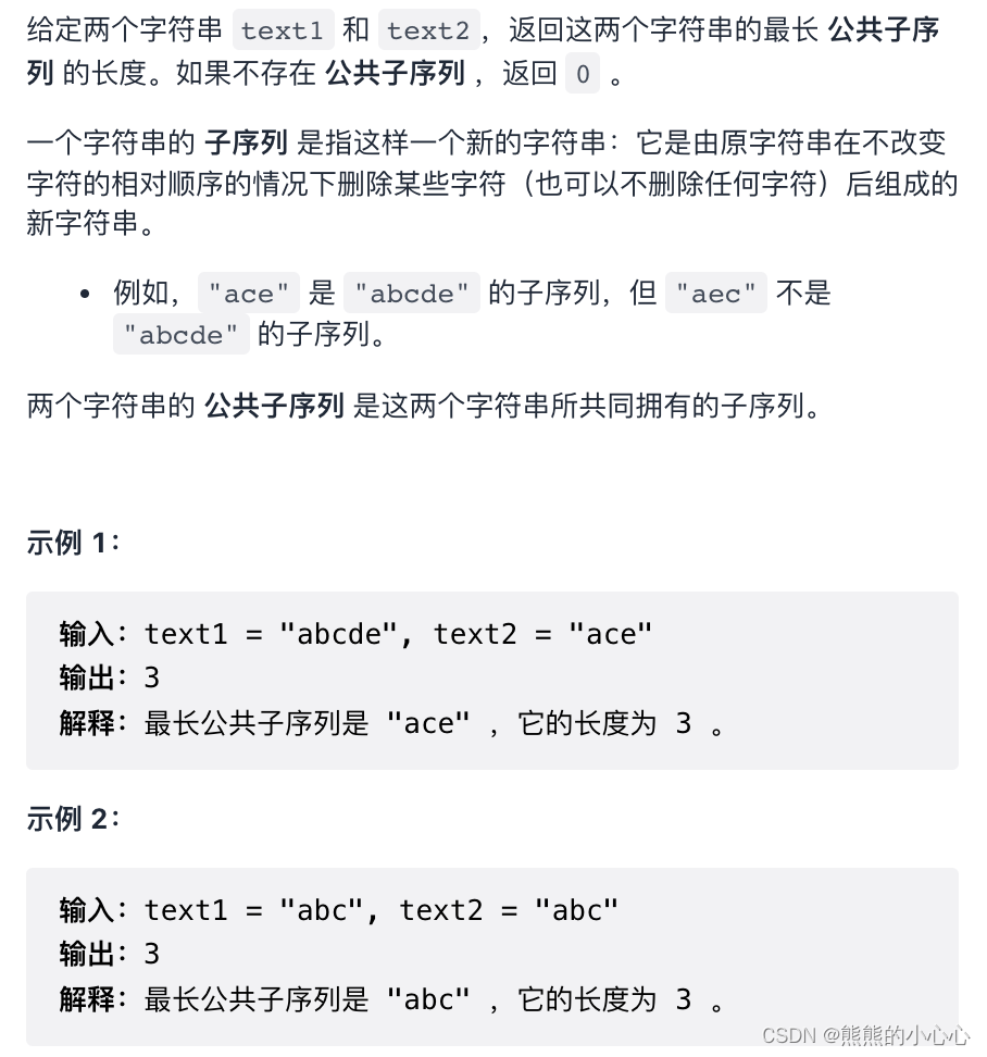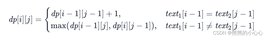 class Solution(object):def longestCommonSubsequence(self, text1, text2):m,n = len(text1),len(text2)#初始化dp矩阵 (m+1)*(n+1)dp = [[0]*(n+1) for _ in range(m+1)]# 没有编辑距离 对第一行 第一列赋值的操作。for i in range(1,m+1):for j in range(1,n+1):if text1[i-1]==text2[j-1]:dp[i][j] = dp[i-1][j-1]+1else:dp[i][j] = max(dp[i-1][j],dp[i][j-1])return dp[m][n]