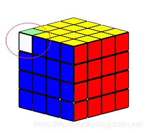 往左旋转,坐标变换规律为:x2 = y1, y2 = 3 - x1,这其中的 3 为魔方阶数减1。