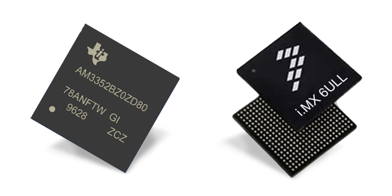 以工业网关以及工业HMI产品为例,目前市场里主流的处理器是恩智浦(NXP)的i.MX 6ULL和德州仪器(TI)的AM335x,两款处理器都有着低成本、高性能的特点,且均为单核ARM处理器,对于客户的技术开发来说,基本可做到无缝对接。