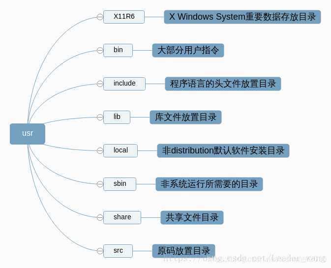 /usr目录,usr是Unix Software Resource的缩写, 也就是『Unix操作系统软件资源』所放置的目录,而不是用户的数据! FHS建议所有软件开发者,应该将他们的数据合理的分别放置到这个目录下的次目录,而不要自行建立该软件自己独立的目录。