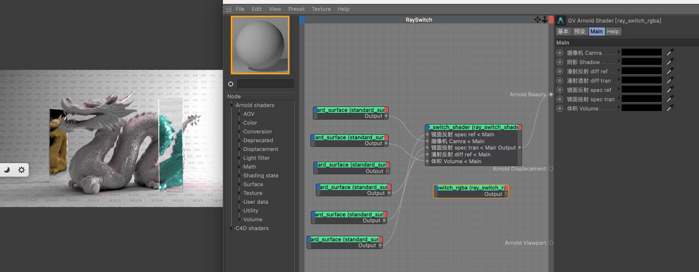 Ray_switch_shader ray_switch_rgba 前者用于表面输入,而后者用于纹理颜色输入。
