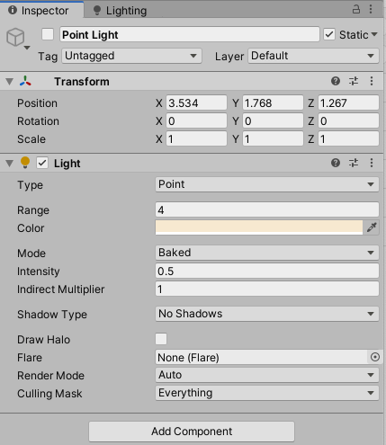 4、point light 这个灯光做为补充之用,效果需要烘焙才能看出来