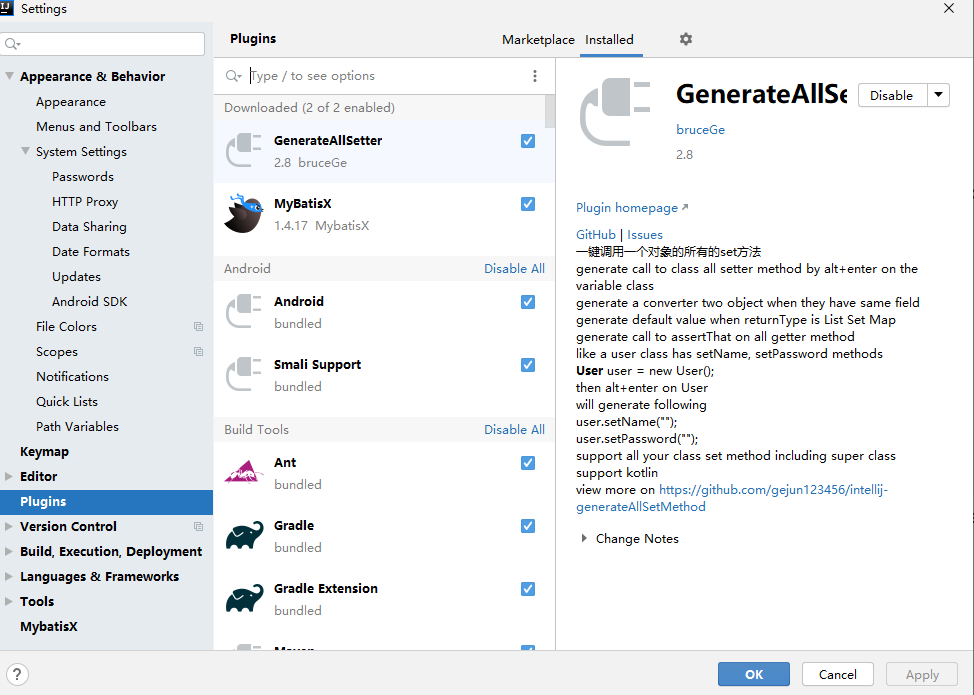 包括什么MyBatisX、GeneratrAllSetter插件都可以下载了。