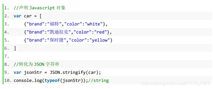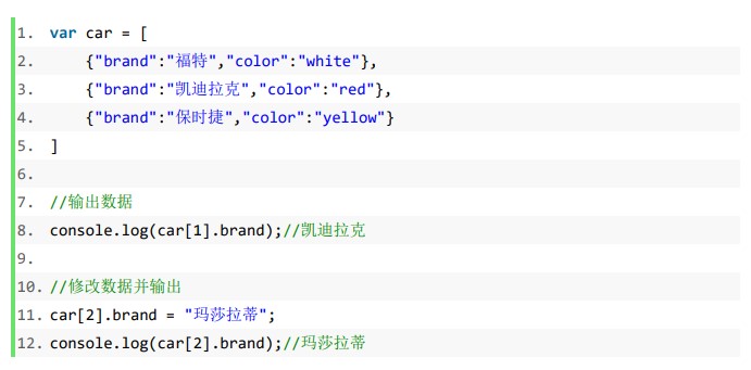 例:对象“car”是一个数组,包含三个对象,每个对象为汽车的信息