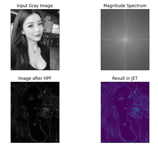 接下来我们进行一个反向操作,也就是图像高通滤波操作,即去低频信号,留高频信号,看看处理后的图像最终有什么变化。我们这次以numpy中的快速傅立叶变换为例来实现图像高通滤波操作: