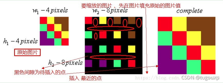 如下图所示,一个4*4的图片缩放为8*8的图片。步骤:
