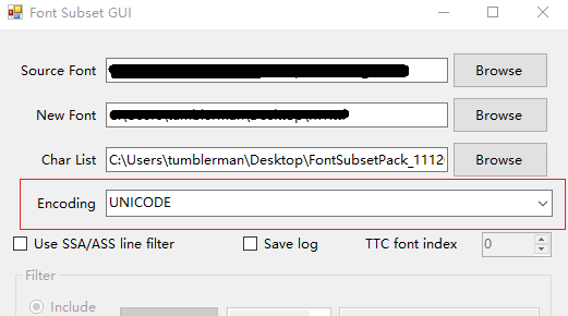 经过修改后,成功生成了新的TTF文件,这个文件成功包含了需要的中文字符,大功告成了吗?!你有很大的机会发现,你的字库在emWin里面根本不能显示,什么情况?!在野火的《emWin应用开发实战指南》里面,有这样一段描述“emWin只支持Unicode编码的矢量字库,而像方正这种国内做得比较好的中文字库基本上都是GB2312编码,要不就是GBK编码,无法在emWin上使用”。偶买噶,不能用了吗?!办法总是想出来的,这个也是我为什么推荐FontSubsetPack的原因,因为这个软件可以修改这个编码方式,而FontPruner暂时没有发现怎么处理。
