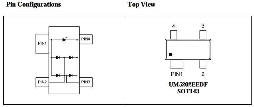 本文主要是介绍UM5202EEDFSOT-143工作电压5V用于高速线路保护的2线ESD保护二极管阵列管UM5202EEDF USB端口和以太网端口保护TVS二极管阵列,低泄漏电流和箝位电压25V结电容1PF,希望对大家解决编程问题提供一定的参考价值,需要的开发者们随着小编来一起学习吧!