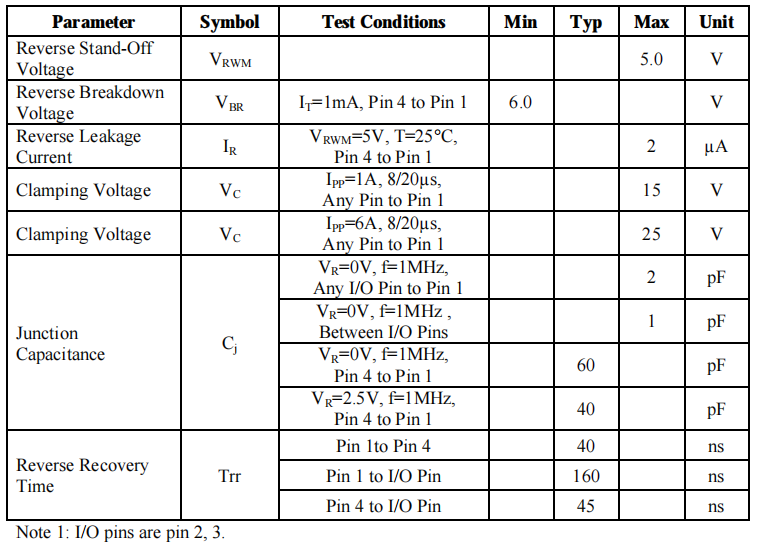符合IEC 61000-4-2(ESD)的高速数据线瞬态保护±15kV(空气),±8kV(接触)