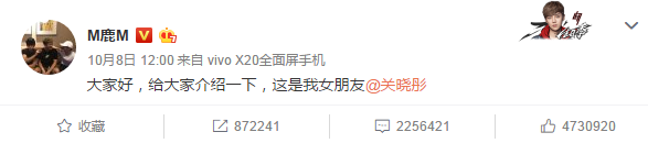 人生处处是惊喜。国庆假期最后一天,当红流量小生鹿晗于正午 12 点,在微博公布恋情。