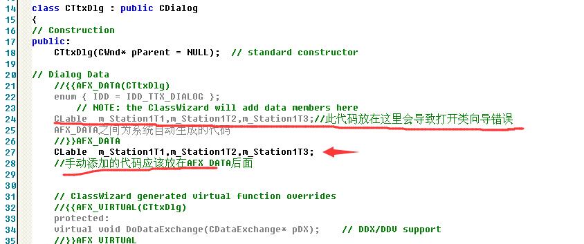 CLable m_Station1T1,m_Station1T2,m_Station1T3;//此代码放在这里会导致打开类向导错误