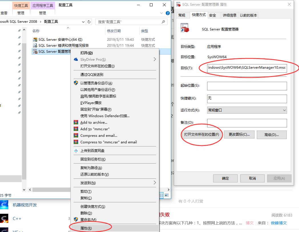 SQL Server 配置管理器-右键-属性-再看“目标“栏的内容