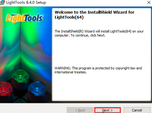 step 4 依赖包安装结束后,弹出LightTools的安装界面,点击Next按钮