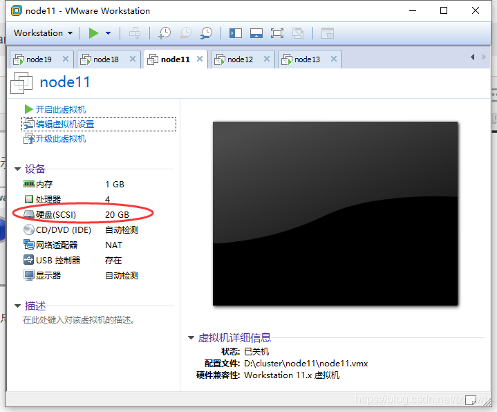 一直点击确定,回到配置信息页面,可以看到磁盘已经修改为 20GB。