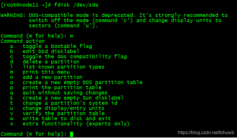 使用 Linux 的 fdisk 分区工具开始给磁盘分区。