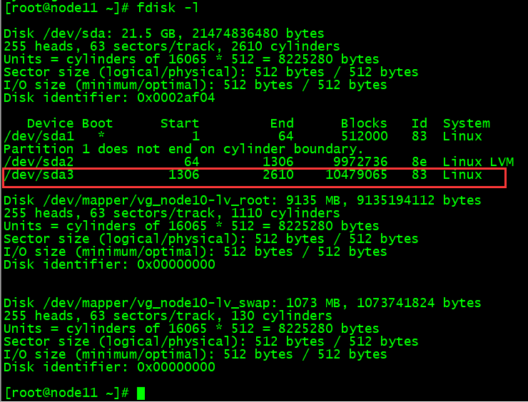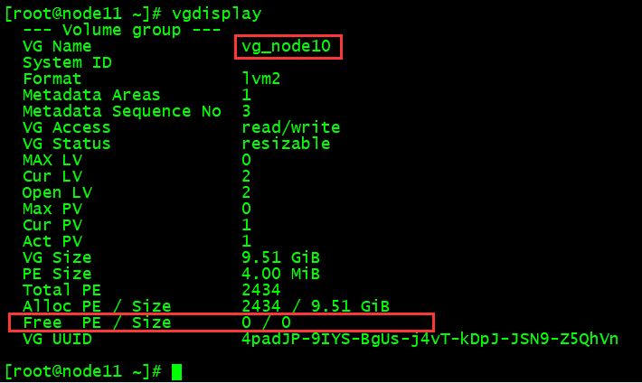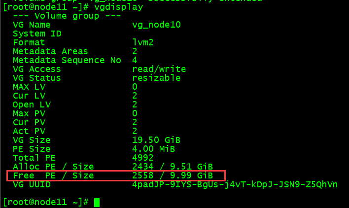 命令:lvextend -L+9.5G /dev/vg_node10/lv_root /dev/sda3
