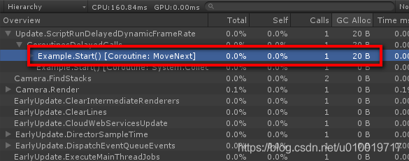 但是 yield return null 就没有发生GC Alloc