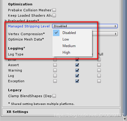 Unity 2018.3.0b中添加了「Managed Stripping Level」