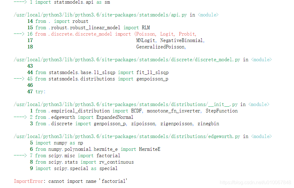 这篇关于解决使用statsmodels导包时报ImportError: cannot import name 'factorial'的问题。的文章就介绍到这儿,希望我们推荐的文章对编程师们有所帮助!
