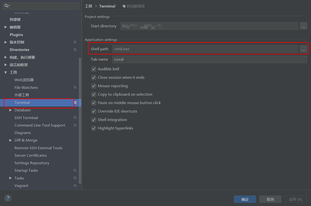 文件--》设置--》工具--》Terminal