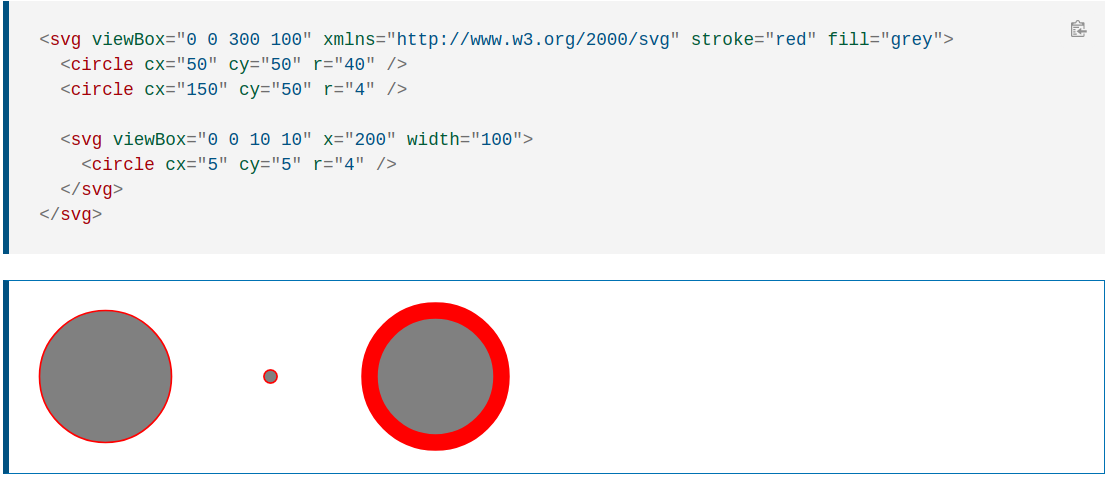 The svg element is a container that defines a new coordinate system and viewport. It is used as the outermost element of SVG documents, but it can also be used to embed an SVG fragment inside an SVG or HTML document.svg 元素是一个容器,它定义了一个新的坐标系和视口。它用作 SVG 文档的最外层元素,但也可用于将 SVG 片段嵌入到 SVG 或 HTML 文档中。