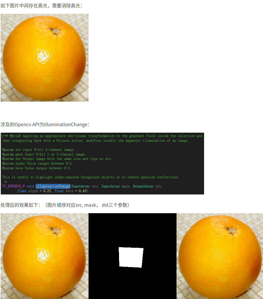本文主要是介绍Opencv 去高光或镜面反射(illuminationChange),希望对大家解决编程问题提供一定的参考价值,需要的开发者们随着小编来一起学习吧!