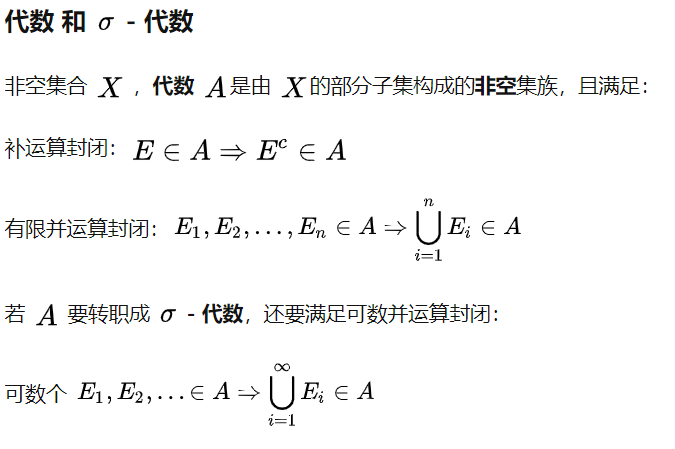 所谓的σ-algebra实则是给定某个集合X,它的一个子集族,这个子集族对取补运算和可数并运算保持封闭。