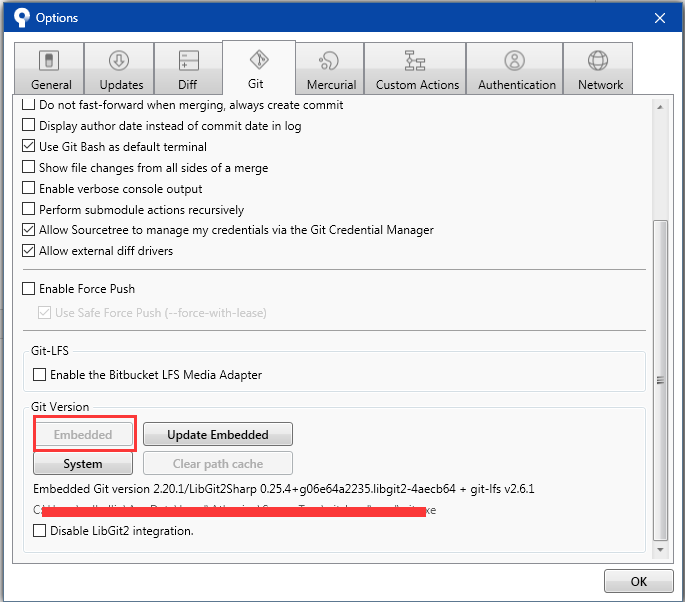 找到git version,选择 embedded, 然后OK. 重新clone,问题就解决了。