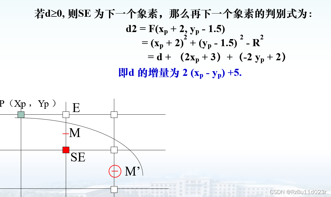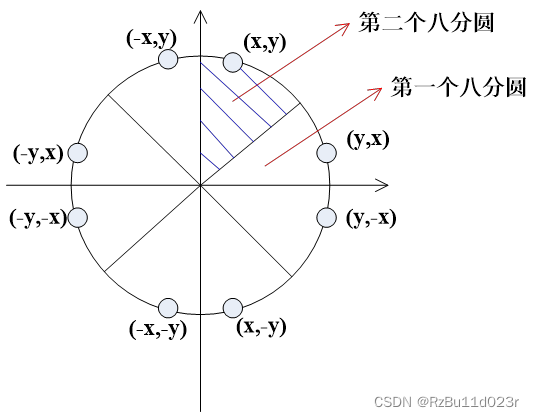 下面以第二个八分圆进行分析,最后再利用对称完成画圆。