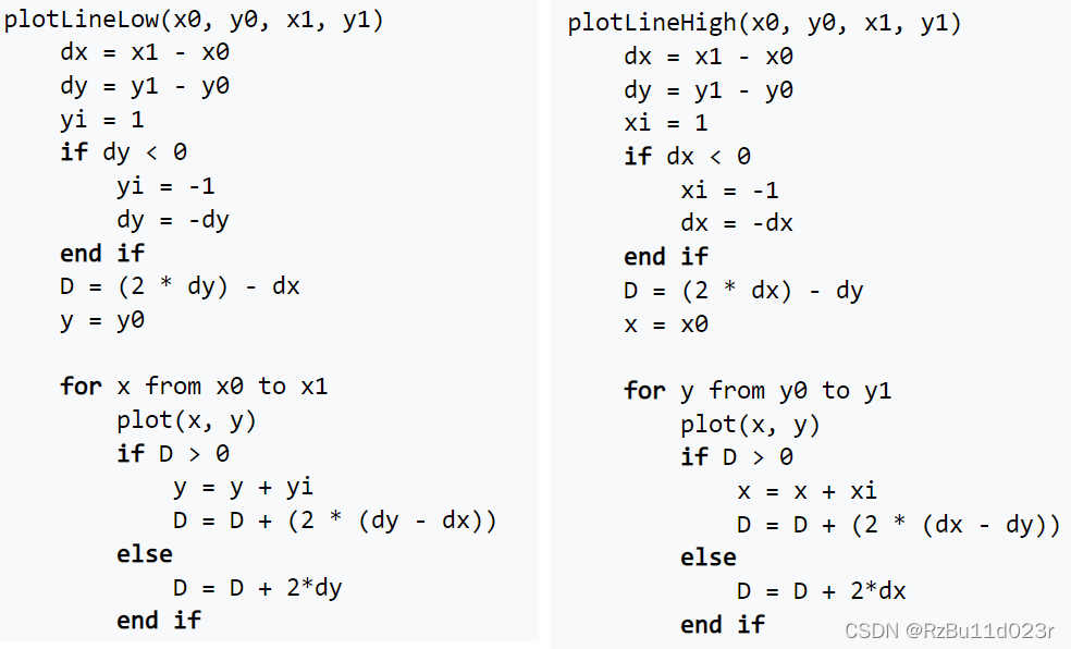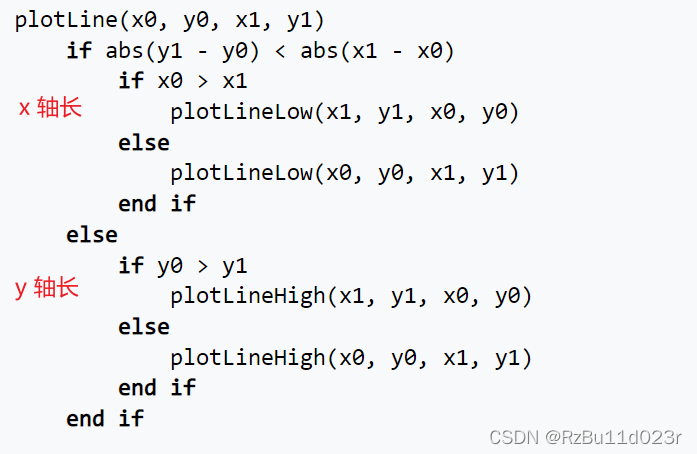 - 要点:由于横轴网格中点和纵轴网格中点的表达式不一样,导致不同斜率的增量表达式不一样,必须用 if else 写两套代码。