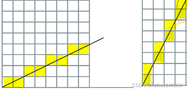 - 要点:在于要么 x 方向总是整数要么 y 方向总是整数。保证方式通过让变化最大方向上的增量为 1.