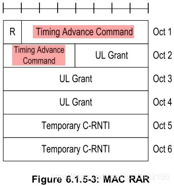 Timing Advance Command MAC controlelement由LCID值为11101(见36.321的Table 6.2.1-1)的MAC PDU subhead指示,且其结构如下(R表示预留bit,设为0):