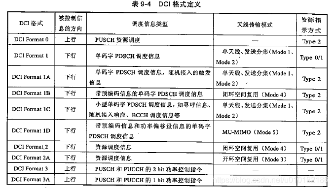 针对不同的用途,物理层设计了不同的DCI格式。根据调度信息的方向(上行or下行)、调度信息的类型(Type)、MIMO传输模式(Mode)、资源指示方式的不同,定义了不同的DCI格式,如图