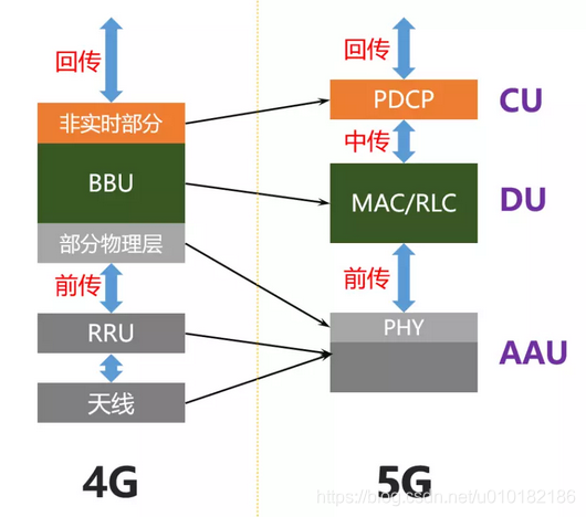 DU:BBU的剩余功能重新定义为DU,负责处理物理层协议和实时服务。