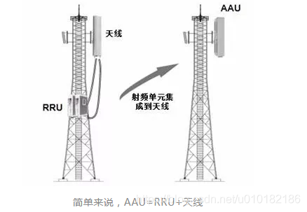 AAU:BBU的部分物理层处理功能与原RRU及无源天线合并为AAU。