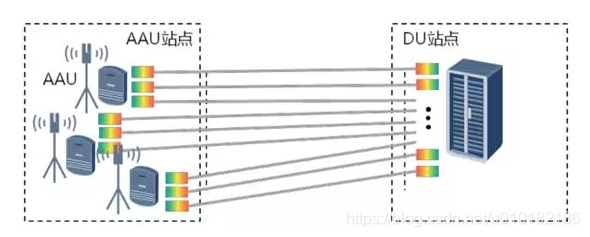 每个AAU与DU全部采用光纤点到点直连组网,如下图: